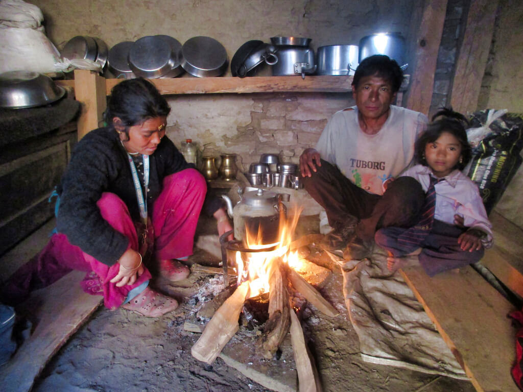 In these remote mountain villages, families traditionally cook on open fires or locally made tin stoves. These stoves typically last about three years, leak smoke into the home, and require large amounts of firewood. Many households use around 75 heavy loads of firewood per year.